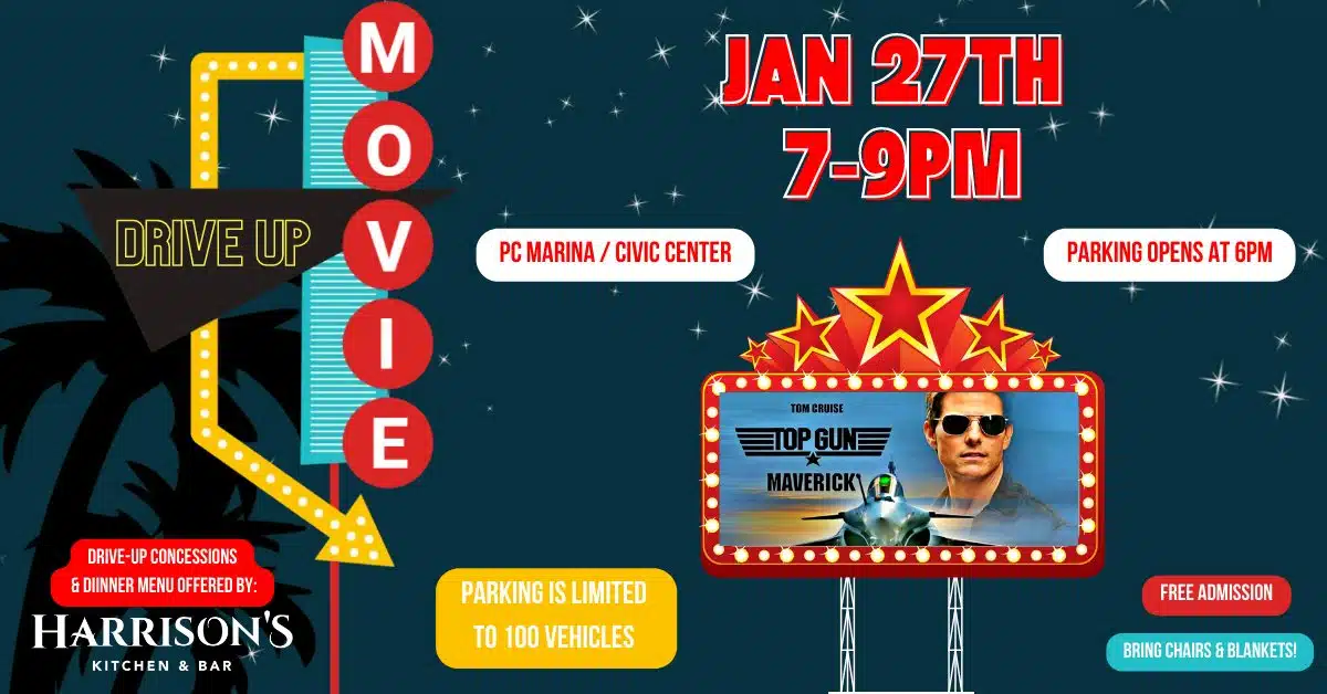 Load up the family and friends and join us January 27th 7-9pm at the PC Marina/Civic Center for TOP GUN MAVERICK.
